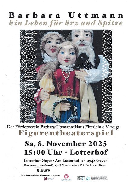 Das Figurentheater zeigt: Barbara Uttmann - ein Leben für Erz und Spitze präsentiert vom Förderverein B.-Uttmann-Haus Elterlein e.V.,